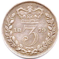ST 1879 D - Obv. 3C - Victoria's hair heavily re-engraved - missing nostril. The missing nostril and incuse nape hairs are shown by RED arrows. To see all areas that Victoria's hair was re-engraved Grade: Obv. Normal tone. Rev. Slightly darker tone. VF/VF+