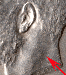 ST 1911 A - Obv. 1 - The I of BRITT points to a tooth in the border. There is a "hollowness" to the back of the neck. ST 1911 C - Obv. 2 - The I of BRITT points to a gap between two teeth in the border. There is the normal "roundness" to the back of the neck. 1911 Reverse Varieties