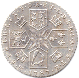 1787 Sixpence - Rev. With 6 hearts in shield.