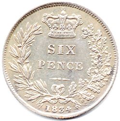 1834 Sixpence - Obv. Bright. Rev. A hint of tone in the legend EF