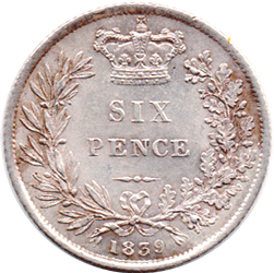 1839 Sixpence - Grade: Choice EF+ Slight pale reddish tone around legend