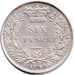 1844 Sixpence - Rev. Ghosting of Victoria's head (due to clashed dies)