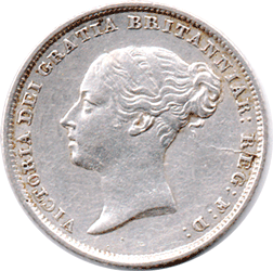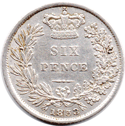 1853 Sixpence - Obv. Coin possibly double struck as all the lettering is doubled & Victoria has 2 chins and a slightly doubled top lip ! Die crack between R & E of REG at 3 o'clock. Rev. Ghosting of Victoria's head (due to clashed dies) Die crack between 8 & 5 of date at 6 o'clock. Very slight scuffing. Date: Wide date [type A] (see 1853 variety list) Grade: EF?-EF Bright