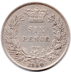 1864 Sixpence - Obv. Light scuffing & indent, in the field, between Victoria's & IA of VICTORIA