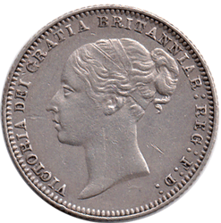 1874 Sixpence B - 4 + C Obv. Hairline scratch vertically, up Victoria's neck.