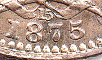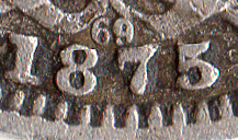 Sixpences 1875 - Die Numbers 2 Different obverse dies were used in 1875. Obverse 3 I do not have sufficient 1875 6ds to determine when obv. 3 was first or last used I have noted that die no. 31; 71 & 73 are with obv. 3. Davies considers that the use of this obverse die is less frequently used and therefore any 1875 6ds with this obverse are scarce. More sightings are needed. The random use of this die (obv. 3) makes it very hard to determine how many times it was used as there is no set pattern. Auction & dealer lists tend to show that obv. 4 was the preferred option as those are the one that continually turn up. Obverse 4 This is the obv. die most commonly used for 1875. It was first used in 1874. I have noted, so far, die no. 3; 12; 18; 26; 43, 55; 58; 62; 63; 69 & 77.