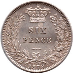 1878 Sixpence A - 4 + C Rev. Die crack around date and lower area.