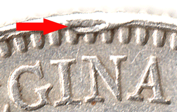 SX 1897 - Obv. Small metal flaw at rim edge just above the IN of REGINA. A bit of metal has spilt over from the edge. There is in fact a thin raised line along the rim edge from I of BRITT at 12 o'clock around to D of DEF at 4 o'clock. A touch too much metal ! Otherwise the a nice bright coin EF+