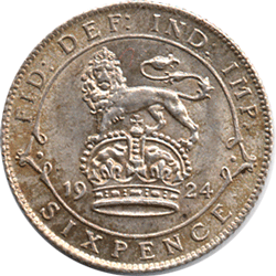 1924 A Sixpence - Obv. A well struck head strike for issue