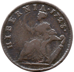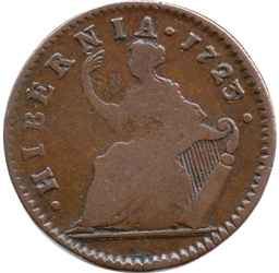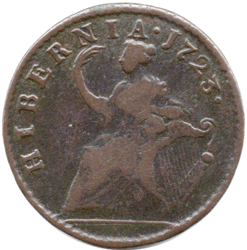 H3 1723 - Wood's Hibernia - Halfpenny (Normal flan 25 mm) [6.8 grams] Rev. NO Stop before HIBERNIA (Normal type) Grade: Fair-Fine £35.00