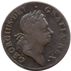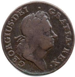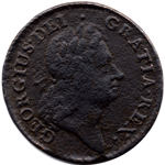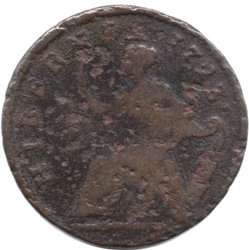 H7 1723 - Wood's Hibernia - Halfpenny (Normal flan 25 mm) [6.7 grams] Rev. NO Stop before HIBERNIA (Normal type) Obv. Fine but dark and claggy. Rev. Fair-Fine dark and claggy £15.00 The scans of this coin have been lightened so one can see beneath the darkness