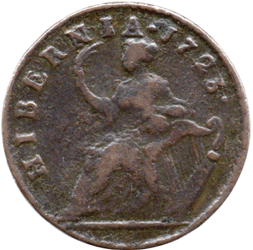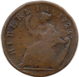 1723 - Wood's Hibernia - Halfpenny (Normal flan 25 mm) [6.6 grams] Rev. NO Stop before HIBERNIA (Normal type) Grade: Fair-Fine (A bit claggy) £30.00