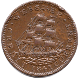 1837 USA - Hard Times Token - Obv. 1837 Van Buren Metallic Currency - Sinking ship (Experiment) hit by lightning. Rev. 1841 Webster Credit Currency Sailing ship (Constitution) Grade: EF?