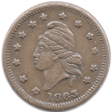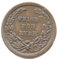C2 1863 USA - Civil War Token - Obv. Patriot head in centre - 13 stars - 1863 Rev. Wreath surround. UNION FOR EVER Grade: VF+