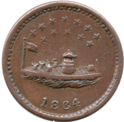 1864 USA - Civil War Token - Obv. Warship - Monitor- 12 Stars Rev. Our Navy in wreath Grade: VF+